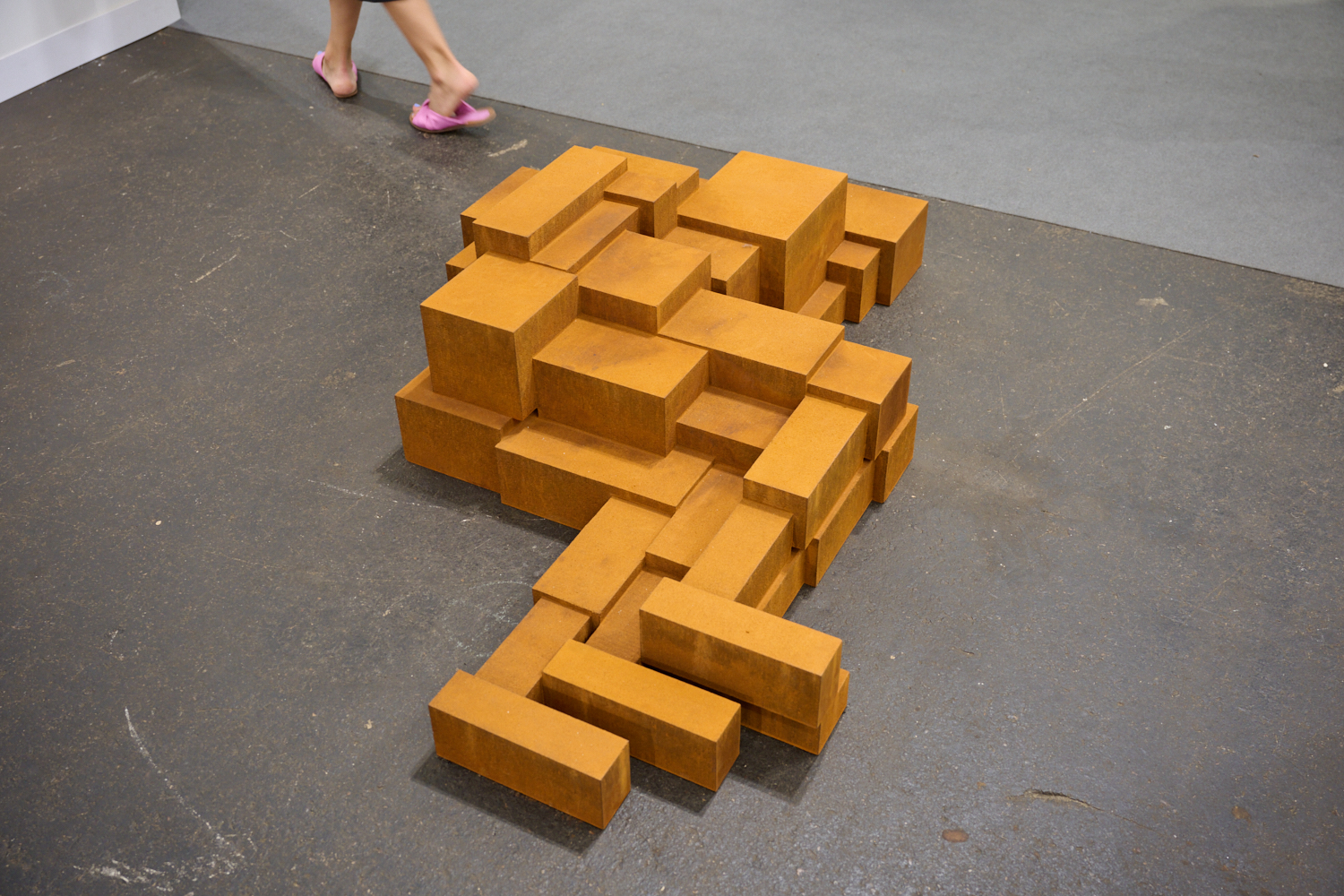Danh Võ’s In God We Trust—a wall of chopped wood and steel stars—was acquired for an institutional-quality collection and exemplifies the kind of ambitious work on offer in the Unlimited sector. Though large-scale installations remain popular—such as Kippenberger’s $3M U-Bahn replica or Arlene Shechet’s $1.2M Midnight—story and provenance are becoming more important than size alone.