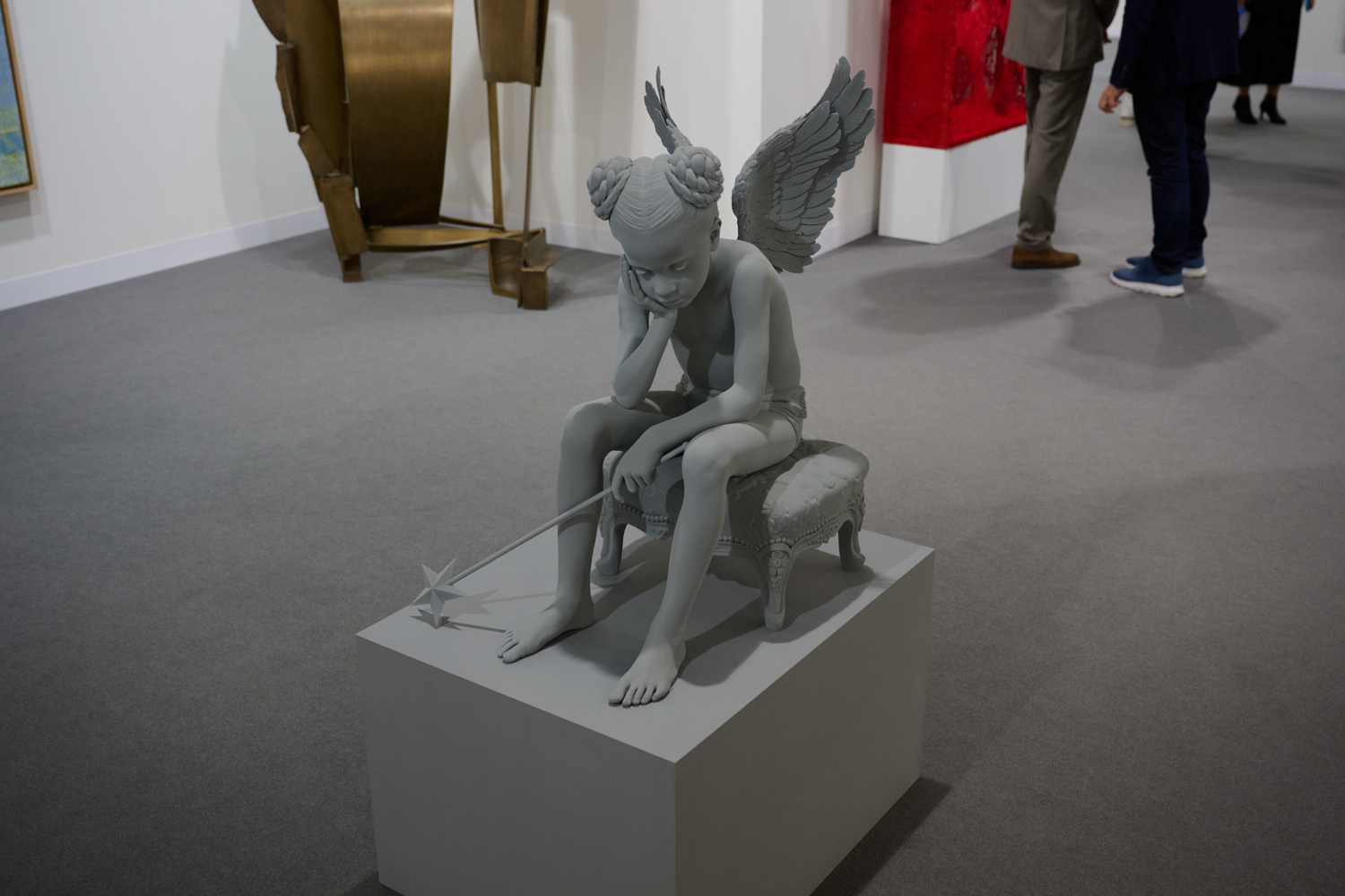 Curatorial innovation stood out. Gagosian’s booth, curated by Francesco Bonami to mark its 30th year at the fair, featured works by Cattelan, Stingel, Fischer, and Currin. The presentation aimed to merge curatorial thinking with a commercial format. Collectors responded to this contextual approach, with notable attention drawn to Piero Golia’s kinetic Still Life (Rotating device).